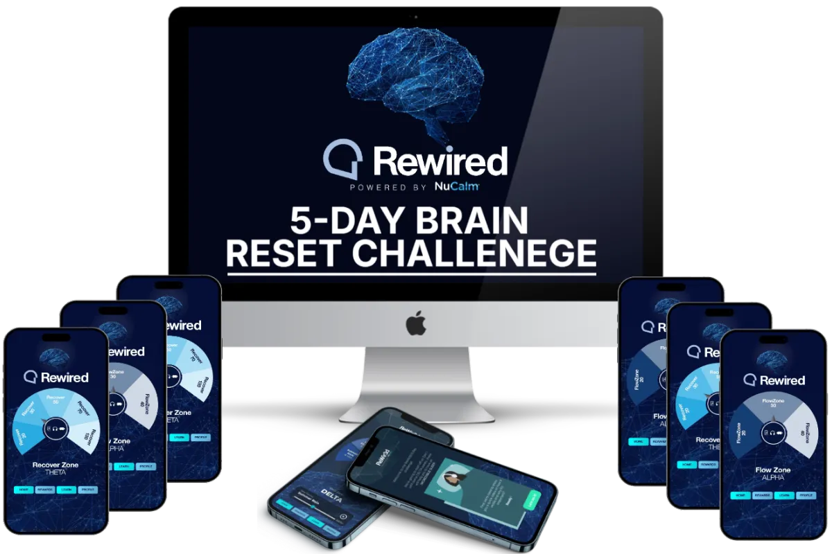 The Rewired 5-Day Brain Reset Challenge is a short, guided experience designed to help your nervous system move out of constant alert and into a stable, regulated state using the same neuroscience-backed technology once reserved for clinical and high-pressure environments.